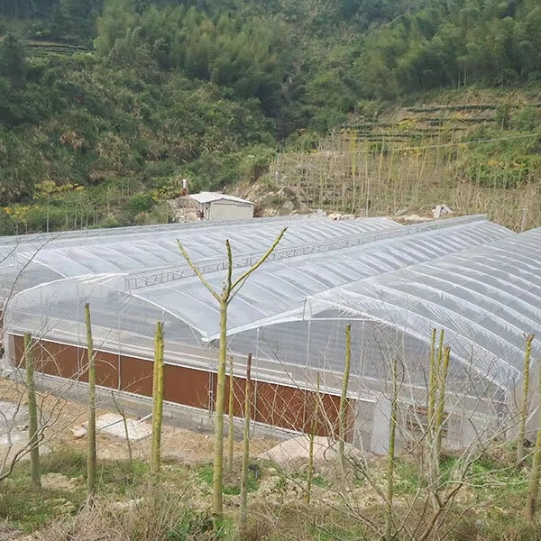 Feature of this model greenhouse | *The roof is equipped with top-opening windows, and the four sides of the greenhouse can be covered with only insect-proof nets. *The roof height can reach 8 meters, featuring good natural ventilation, which is very suitable for very hot countries. *Each column is formed by connecting two pipes with a diameter of Φ38mm through steel clips, which is very firm and has good wind resistance. *There is rainwater drainage gutter to collect rain in raining season |